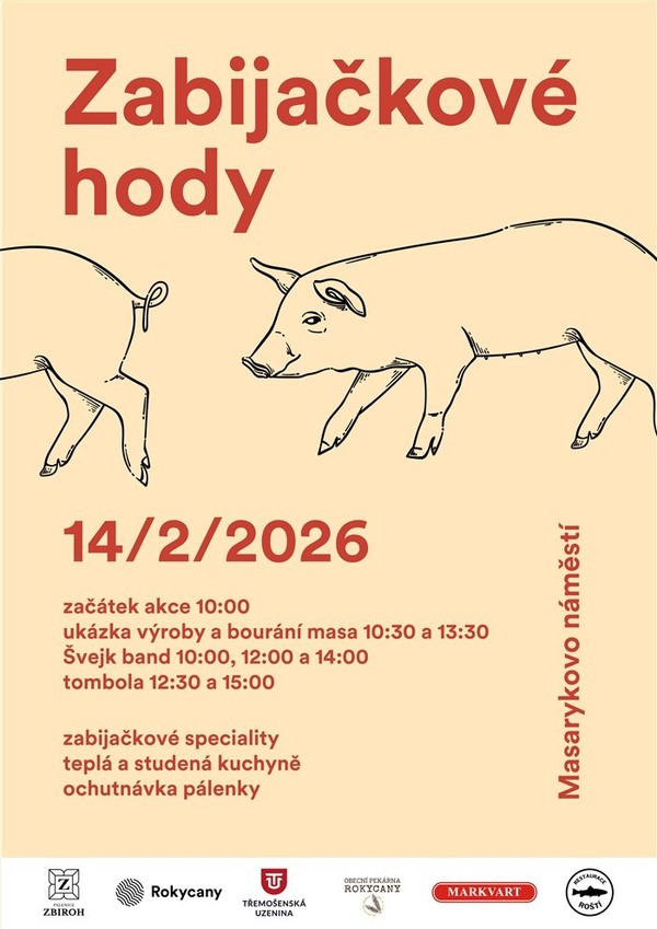 V sobotu 14. února 2026 se na Masarykově náměstí v Rokycanech uskuteční Zabijačkové hody. Město tuto akci pořádá vůbec poprvé. Hody započnou v 10:00 a nabídnou celodenní program spojený s tradičními chutěmi a živou hudbou.